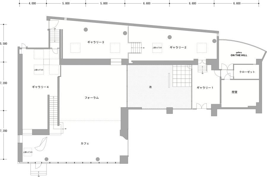 | 付帯備品 | BGMセット、ワイヤレスマイク、イントレ スポットライト100個、ピクチャーレール |